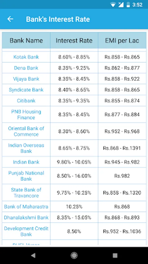 Calculate Loan EMI, interest rate and time period by loan fund amount for all indian Bank