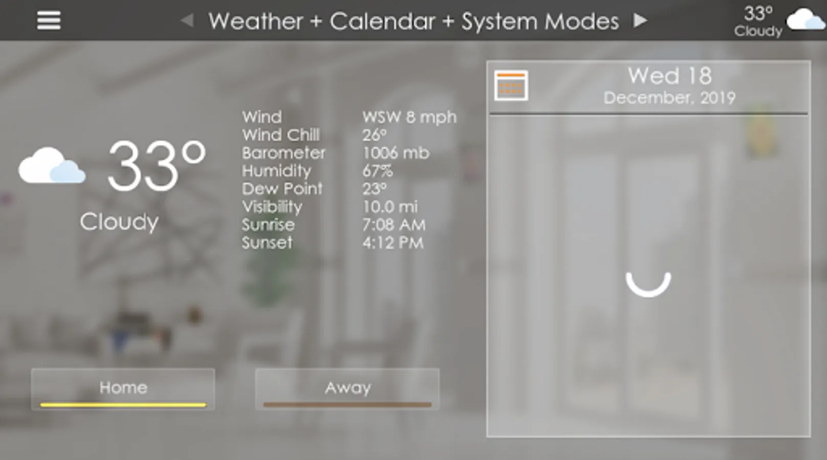 Nice Viewer provides an interface to an Nice home entertainment and management system on an Android. Nice Viewer integrates and provides control for media, home theater, distributed audio, security, door locks, climate, lighting, shades, video cameras, irrigation, pool/spa and more.