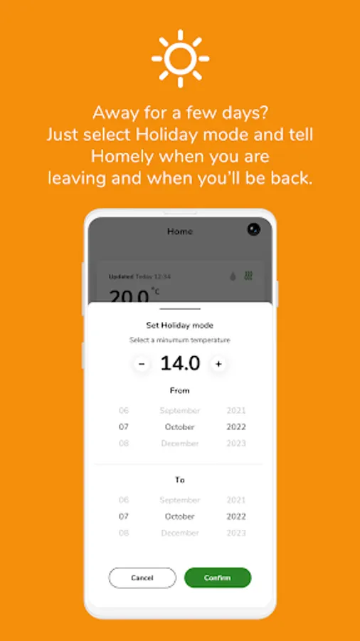 Away for a few days? Just select Holiday mode and tell Homely when you are leaving and when you’ll be back. Warmer weather on the way? Switch on Hot Water Only mode to keep your house cooler but your water nice and warm.