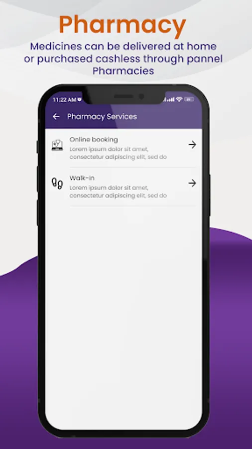 ● Authentic prescribed or over-the-counter medicine delivery or cashless through medIQ panel walk-in pharmacies.
