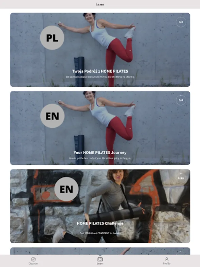 Aplikacja HOME PILATES umożliwia dostęp do treningów w dowolnym miejscu i czasie.