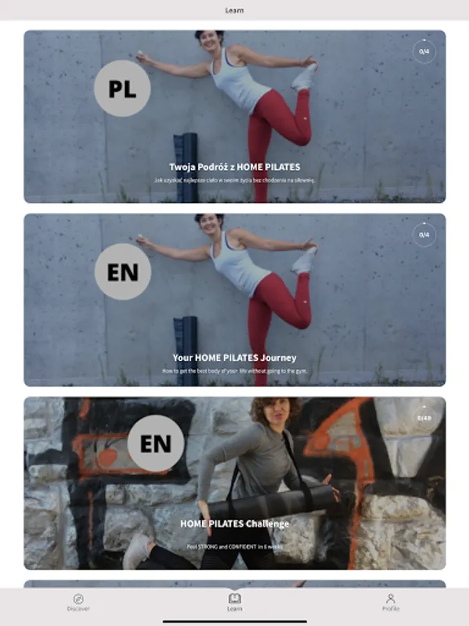 cotygodniowe rozmowy coachingowe po zakończeniu wyzwania oraz społeczność Home Pilates, aby rozliczać się i tworzyć długoterminowe wyniki.