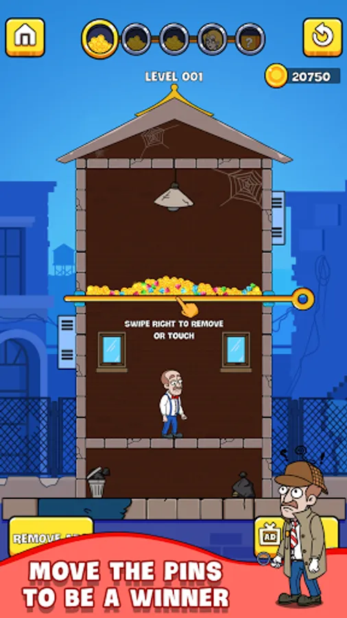 🏡In this Home Pin game, you are in an abandoned house and will have the task of overcoming pull the pin challenges. After draining the battery, you will save the beautiful girl, pick up a lot of gold, diamonds, and more, you will pick up a lot of accessories to redecorate the abandoned house, making it your own home.💪💪
