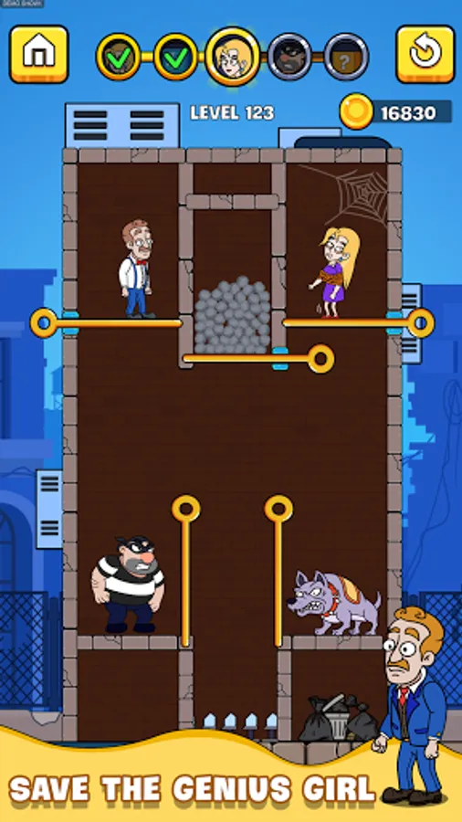 Gameplay is very simple, just use your smart brain to pull the pin in reasonable order. If you draw the wrong, you will not save her, or gold will be melted lava …