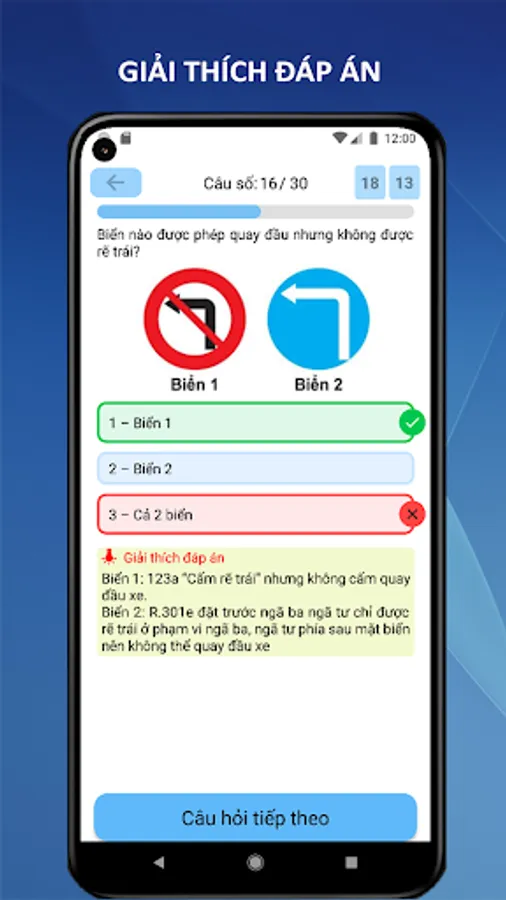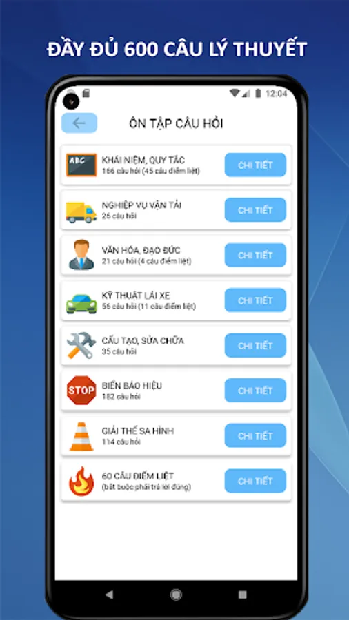 The application includes all 600 of the latest GPLX questions. The application is built on a set of 600 questions according to the guiding letter No: 1883/TCDBVN-QLPT&NL dated 30/03/2020