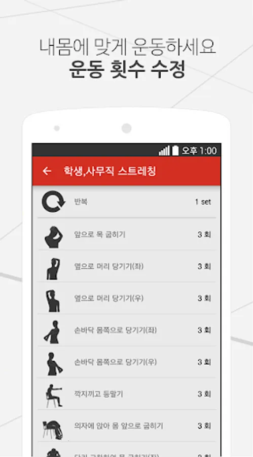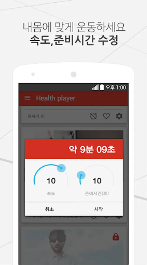 Health Player does not only demonstrates postures but uses commands and animations to personally show you the postures, ensuring that you maintain an effective exercise speed. Moreover, users can personally adjust the exercise frequency, speed and preparation time.