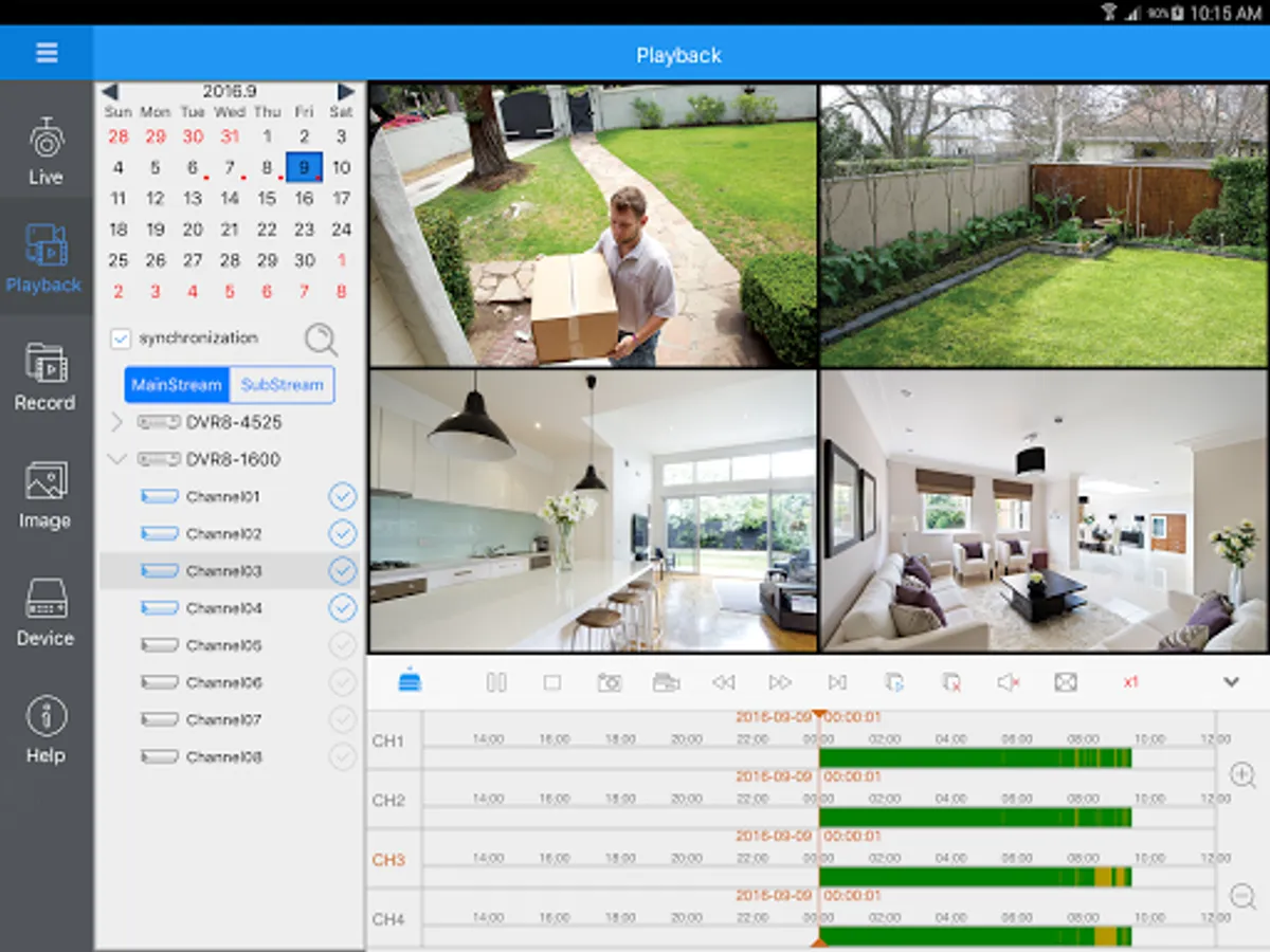 Multi-channel viewing with up to 16 cameras on screen at the same time (16ch view works best on tablets)