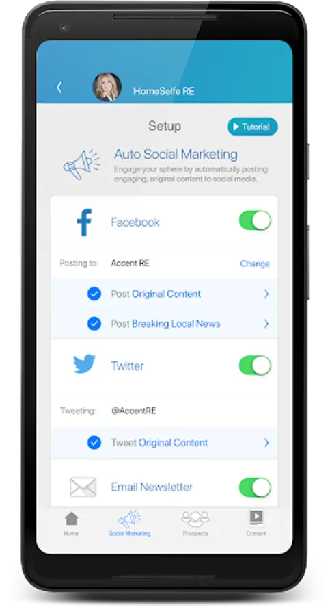 HomeSelfe RE is a multi-channel social marketing platform that will consistently put you in front of a wide audience - and automatically engage that audience on Facebook and Twitter. Original, unique content is automatically posted to your social profiles 16x a month. Plus a master-crafted email newsletter is sent out once a month on your behalf, without lifting a finger!