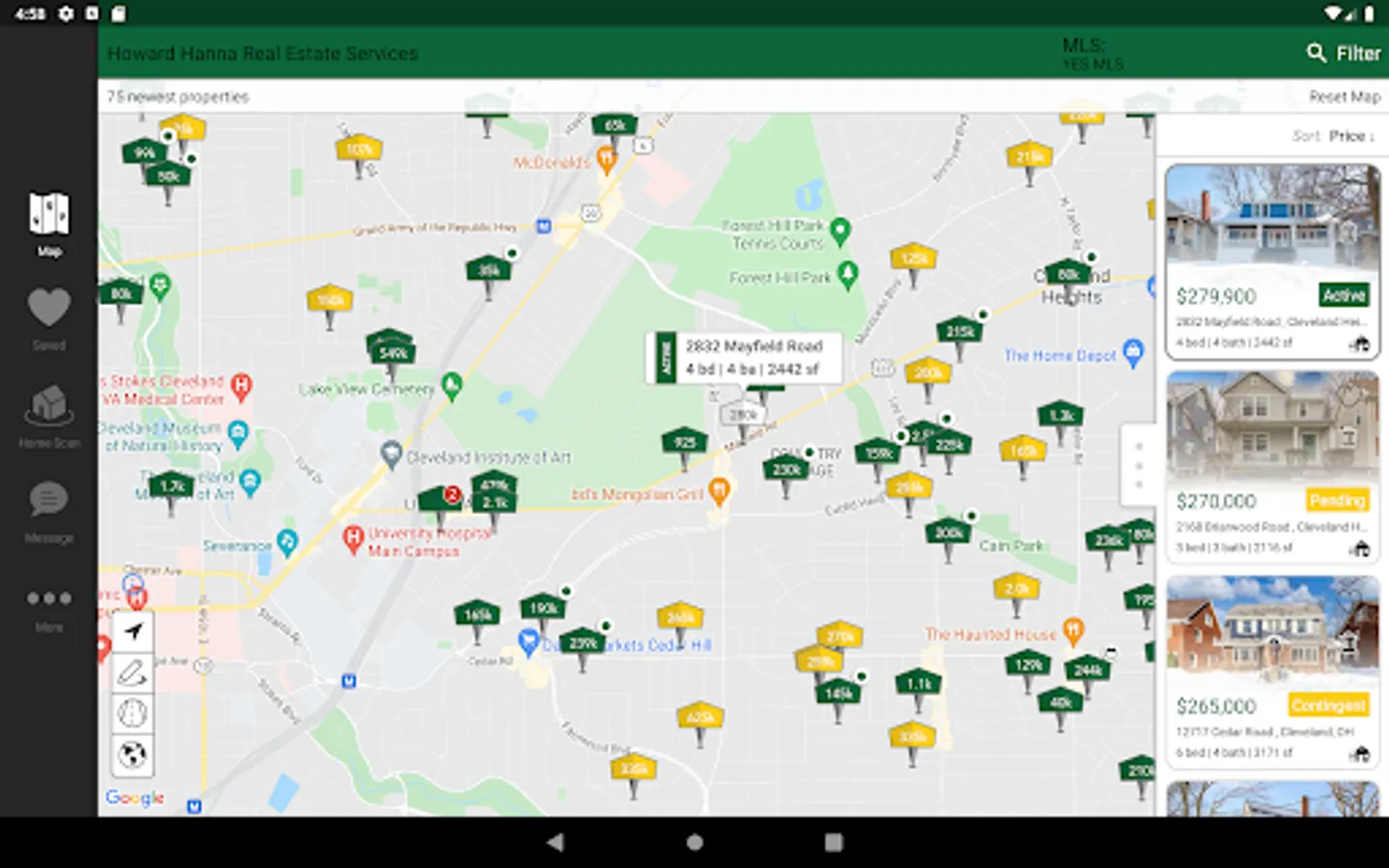In this app, you will be able to see all Howard Hanna Homes for sale throughout our market areas, including homes for sale in Pennsylvania, Ohio, New York, Virginia, Michigan, West Virginia, Maryland, North Carolina, South Carolina, and Indiana.