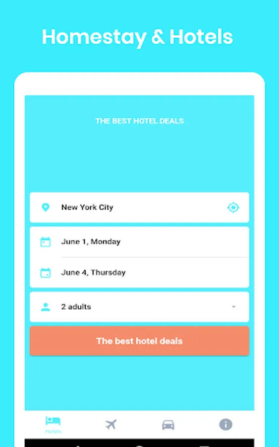 Homestay is an app to search for homestay rooms and cheap hotels. We help you find the latest room rates from the top online booking sites. Homestay helps you find rooms in most places around the world.