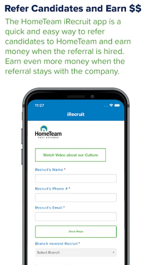 HomeTeam prides itself on the quality of it’s employees. The iRecruit App is a quick and efficient way for users to learn about services we offer and HomeTeam employees and customers to refer talented friends, family members and other talented individuals who are seeking to join an amazing company with a fun and winning culture.