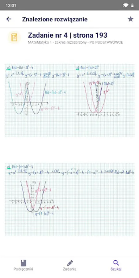 Add your textbook and check if you are on the right track. Our application will not only show you the result of the task, but also explain how to properly solve it. Just like in tutoring or in the classroom in a math class. All our solutions are checked by educated educators and experienced teachers. The process of reaching the right result is developed in a repeatable way, always presented in the same clear and legible way.