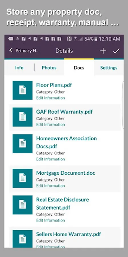 · Manage unlimited documents such as owner’s manuals, warranties, and receipts