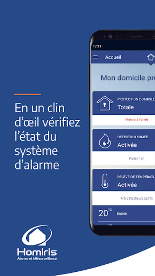 Control your alarm system remotely on your smartphone using the Homiris application.
