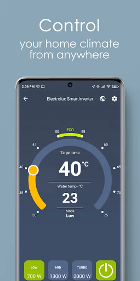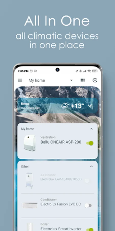 One app for all climatic appliances: air conditioners, water heaters, air heaters, convection heaters, air purifiers, air humidifiers, weather stations, etc.