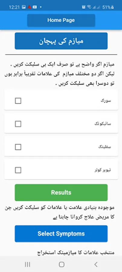 Select the required symptoms at your own will, when you have completed symptoms selection, then click "Select Medicine" button from the top menu.