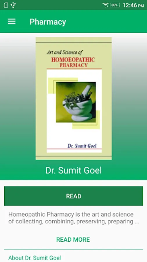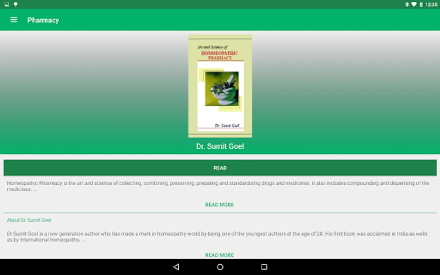 Art & Science of Homeopathic Pharmacy Mobile App is an e-book mobile app on pioneering work on homeopathic pharmacy by Dr. Sumit Goel and a leading text book on the subject of homeopathic pharmacy in most of the homeopathic colleges and schools. The easy to use, read & listen, bookmark features of this mobile app are ideal book material for students of homeopathy. It is well presented and complied from the original sources like Hahnemann and the Pharmacopoeia.