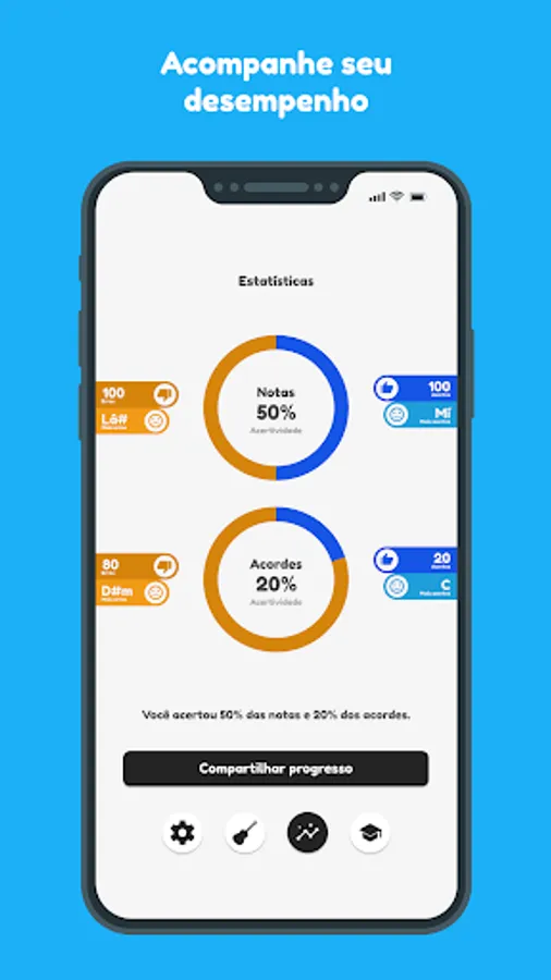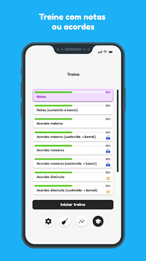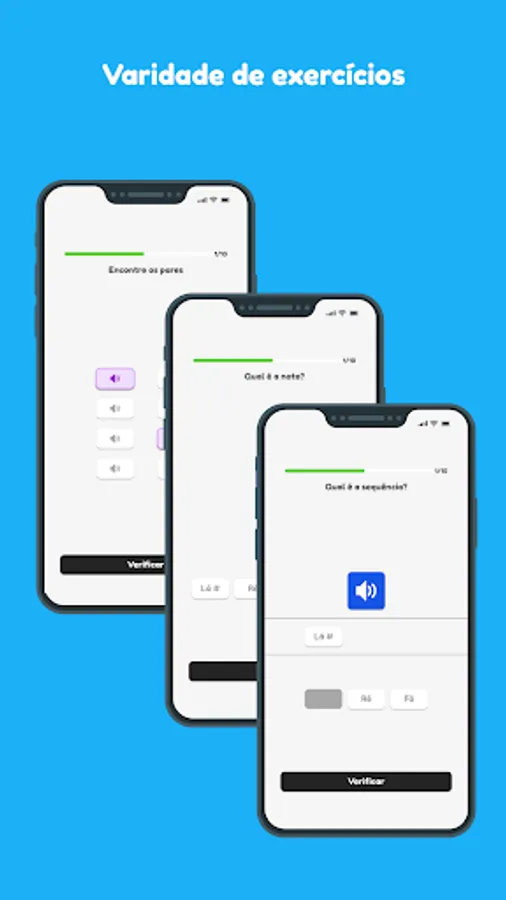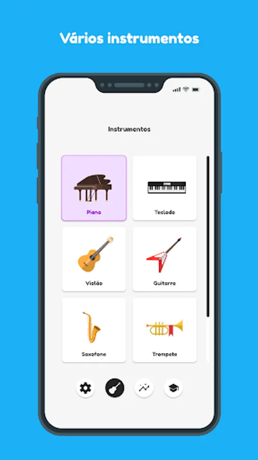 Choose from a variety of musical instruments such as guitar, piano, flute, alto saxophone, electric piano, trumpet, xylophone, violin, electric guitar, electric bass, harp, banjo and saxophone to train your ear and increase your proficiency in different contexts musicals.