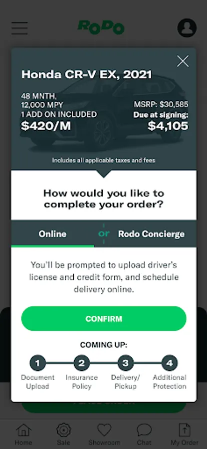 Rodo has been doing contact-free order and delivery for years. We can help you get your car delivered the same day you order, or arrange for convenient pickup from the dealership. Drive it around the block to make sure everything is just as you expected.