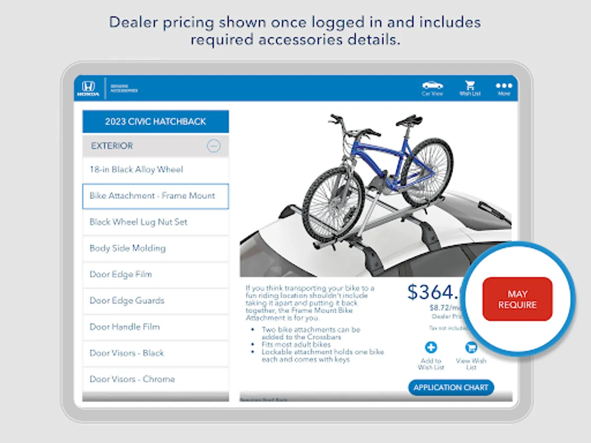 The Honda Accessories App is a digital platform that helps dealers explore Genuine Honda Accessories options that add convenience, personalize, and protect customers’ vehicles.