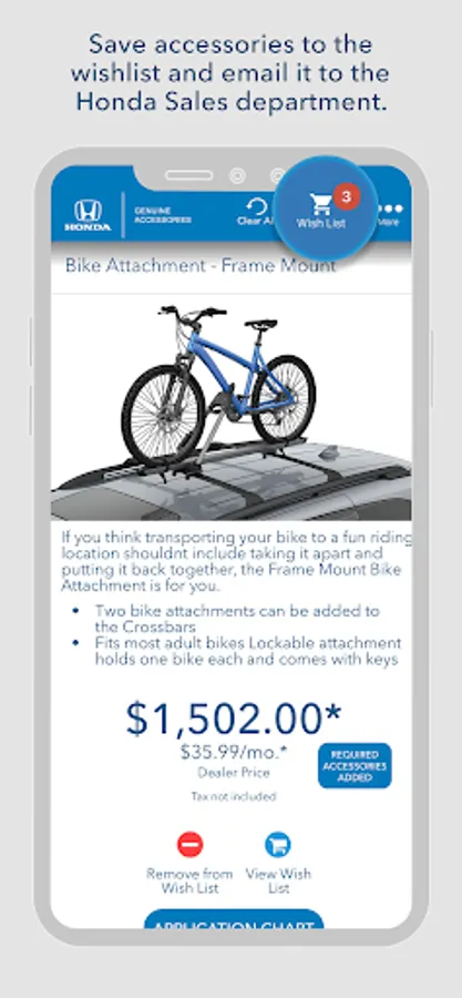 Honda purchasers can engage and share hi-res accessory images, an app chart, videos, a wish-list cart, via Wish List and Email.