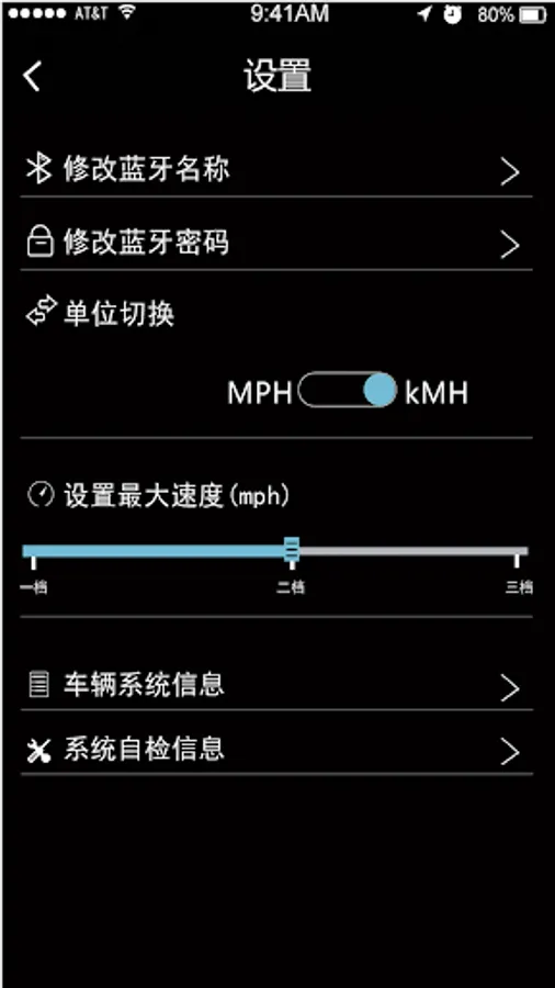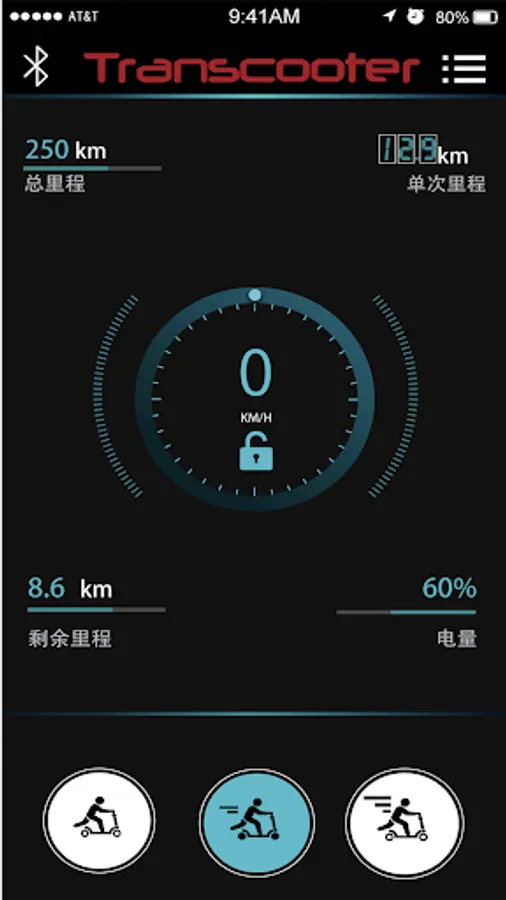 Monitoring the current battery level prompts the user to charge in real time, and can observe the current mileage for recording.