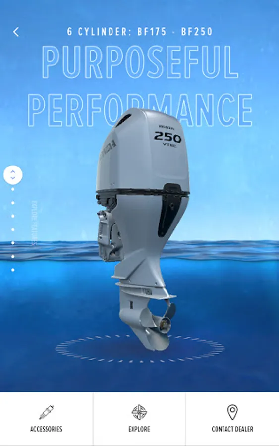 Find the outboard that fits your needs, see the engine from every angle with our 360-degree view and locate your nearest Honda Marine dealer, all within a touch.