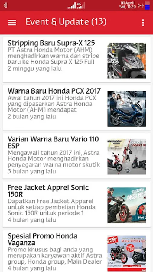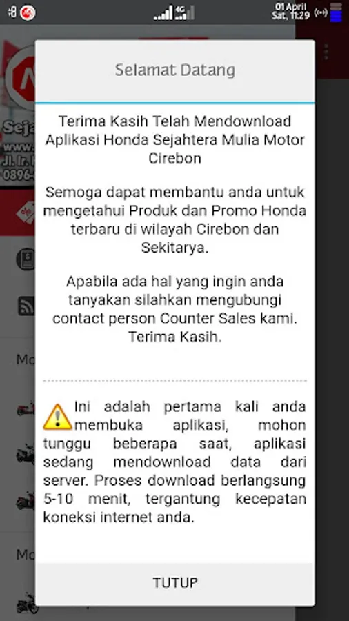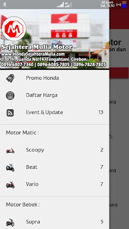 This application contains Products Catalog Honda, along with the price and the latest Promo Honda in Cirebon and surrounding area.
