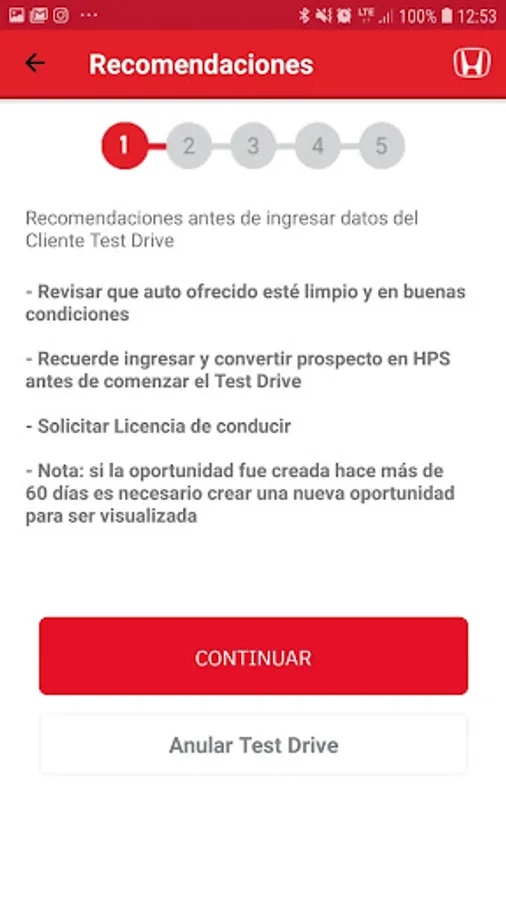 Exclusive use Test Drive App opportunities for Honda Chile