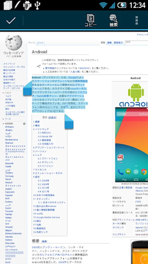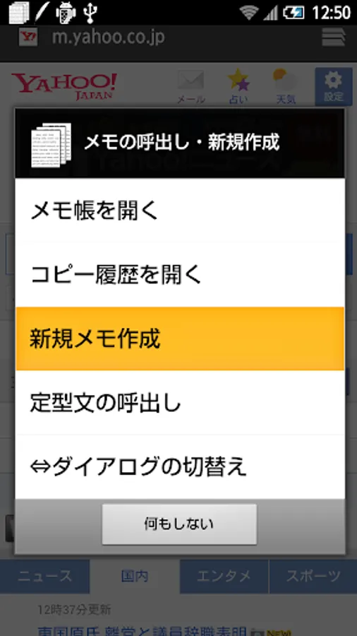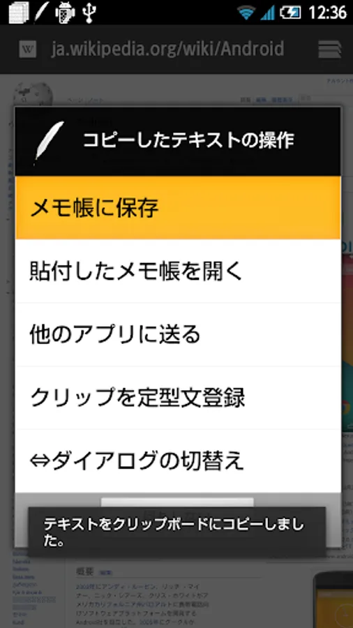• The copy operation is detected, you will be able to make pop-up the operation menu. (Copy motion detection can be used in Android3.0 or later) (It is turned ON by default. You can switch the ON / OFF setting screen apps body to start from the icon)