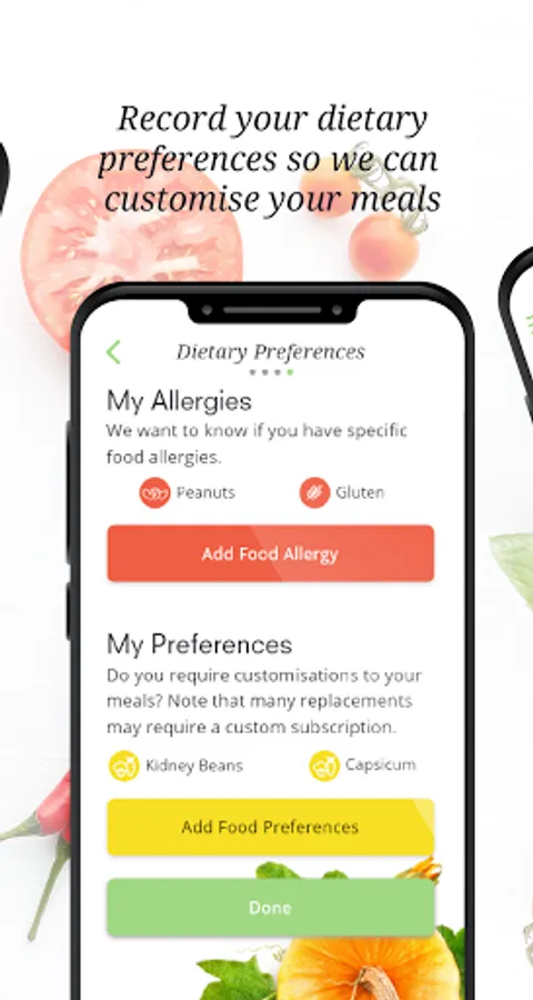 - Set your food allergies and restrictions so we can customise your meals