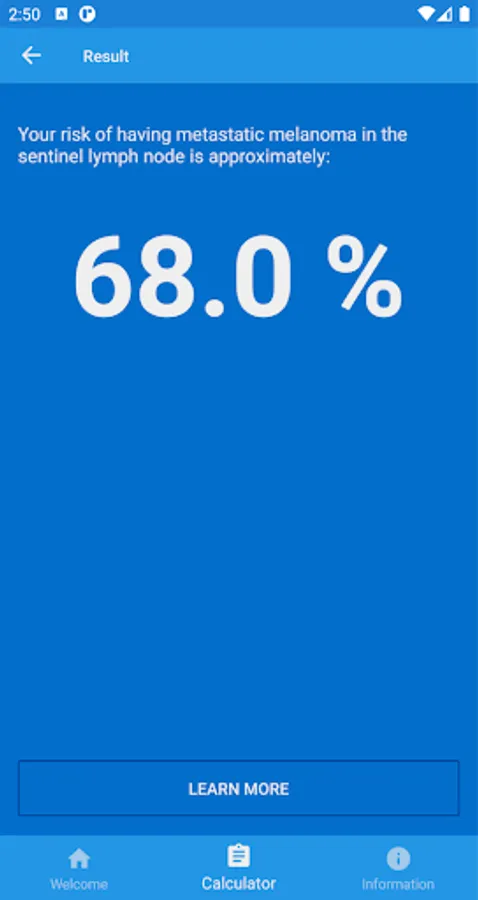 MelRisk is an easy to use app, which calculates the risk of metastatic cutaneous melanoma within the sentinel lymph node.