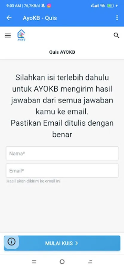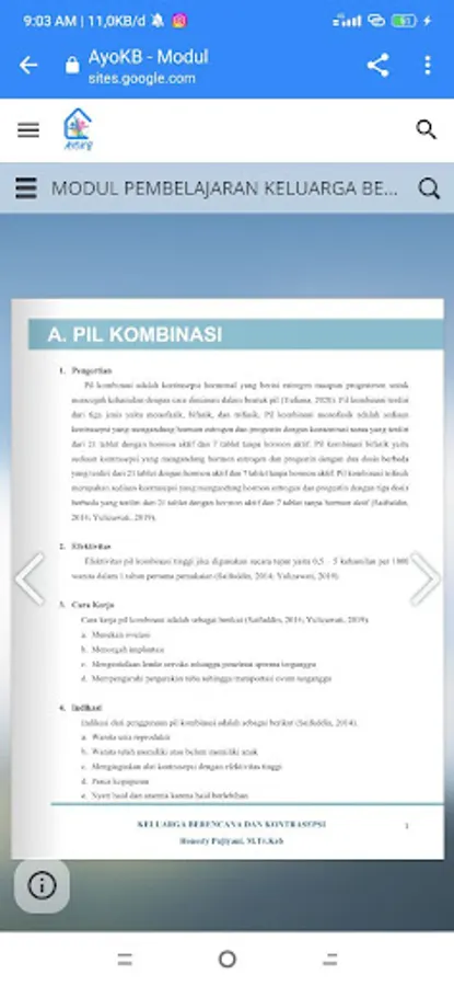 AYOKB is an application that can be used as a learning media for Family Planning and Contraception. The AYOKB application menu contains knowledge materials and videos about contraceptives. The evaluation menu can be used by application users to work on quizzes, after reading and viewing learning videos. AYOKB also provides a means of discussion and consultation regarding family planning and contraception for application users. Equipped with an article menu, AYOKB provides the latest information on Family Planning and Contraception. The KB Injection Calculator feature makes it easy for application users to calculate the schedule for the next KB Injection according to the date of arrival of the last injection.