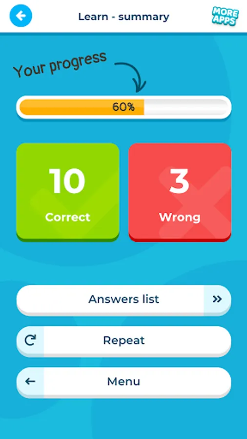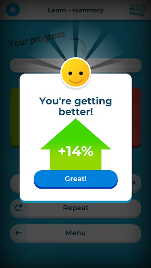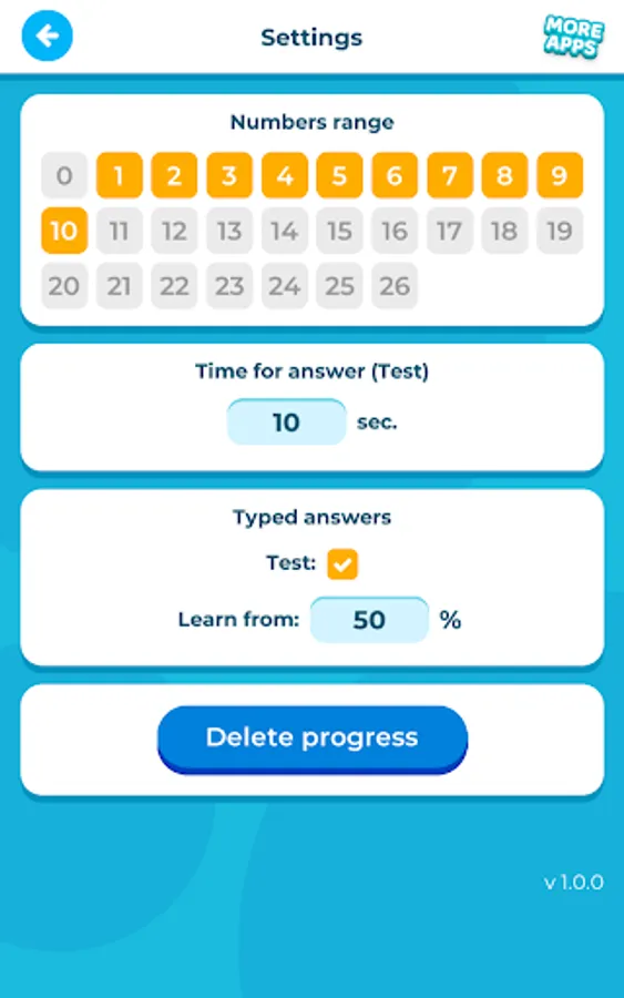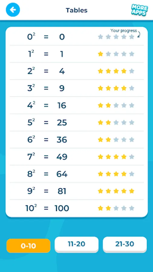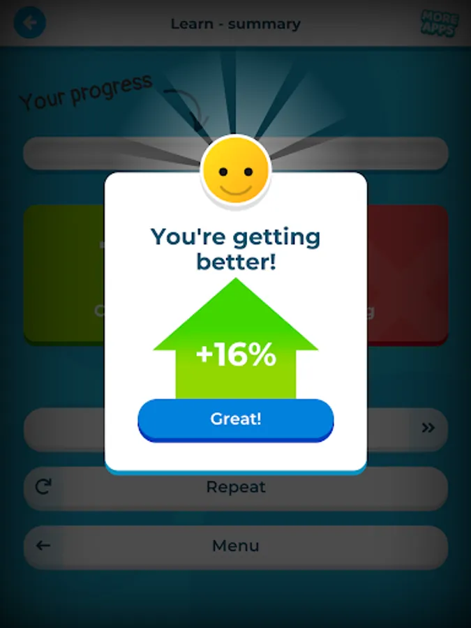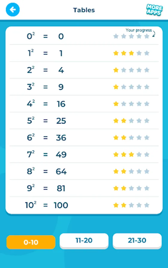 ๐น The learning process is visualized using progress stars. This allows you to check both the learning progress for individual activities as well as the overall progress. The algorithm separately calculates the progress for each type of mathematical operation. Additionally, it adapts to the currently selected used in the mathematical operations.