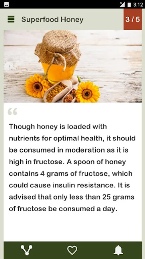This App provides an in-depth look at the possible health benefits of Honey, its nutritional profile, how to incorporate more of it into your diet and any potential health risks associated with consuming it.