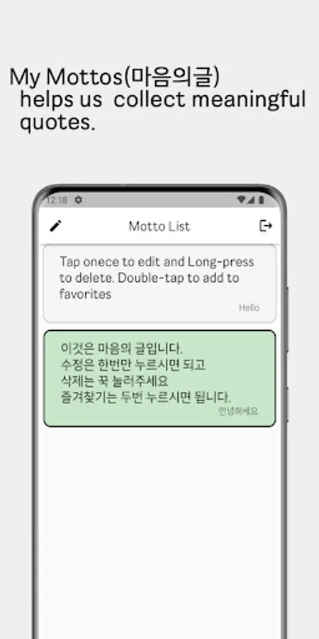 "My Mottos" is an app designed for individuals who want to collect and store meaningful phrases or sentences that they come across in their daily lives. With the use of tags, users can categorize and organize similar thoughts or phrases for easy access.