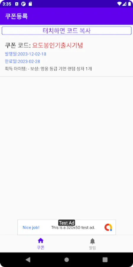 When a new "game coupon" comes out, register through a push notification.
