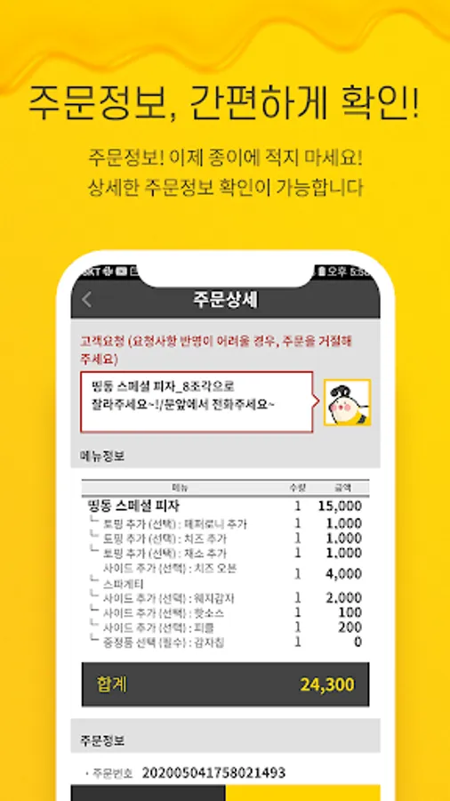 - When you touch the new order can check the details of your request, menu information, order information, you do not need enemies apart.