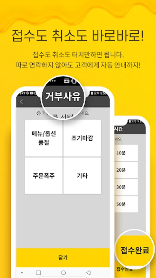 - When you touch the pick up food orders and select the requested time and complete orders are received in an instant, and complete character received will be automatically sent to the customer.