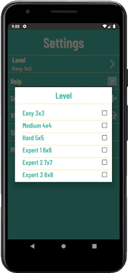 - Choose a board size of 3x3, 4x4, 5x4 or 6x4 blocks