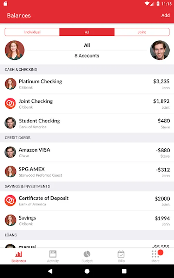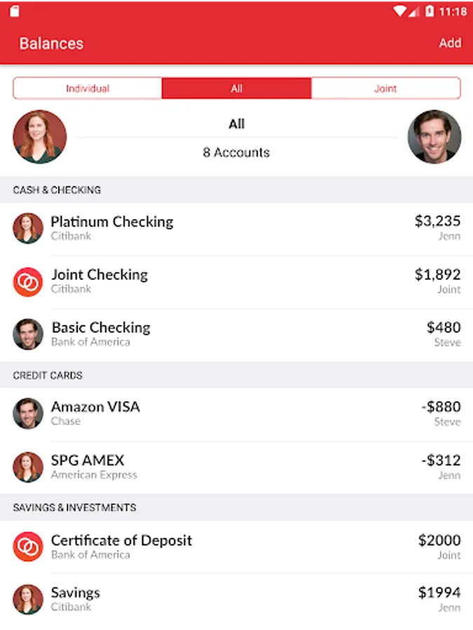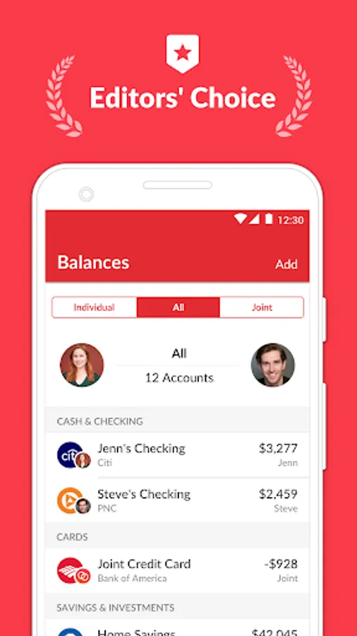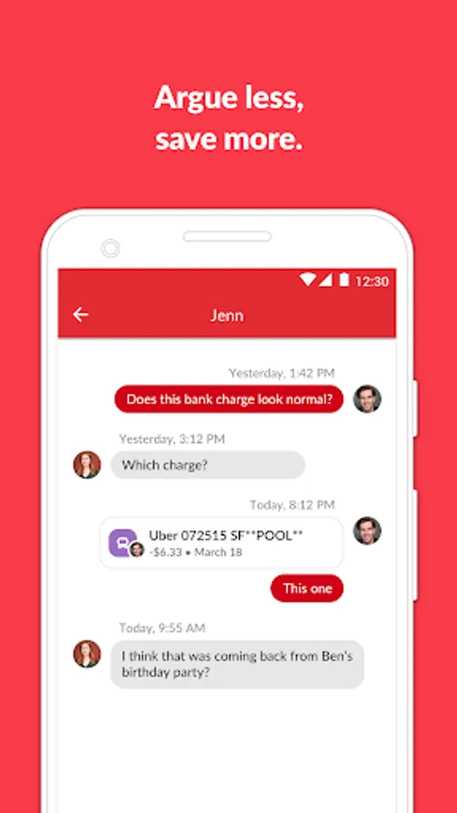 • Set monthly household spending limits on each category, and get notified when you and your partner are nearing it.