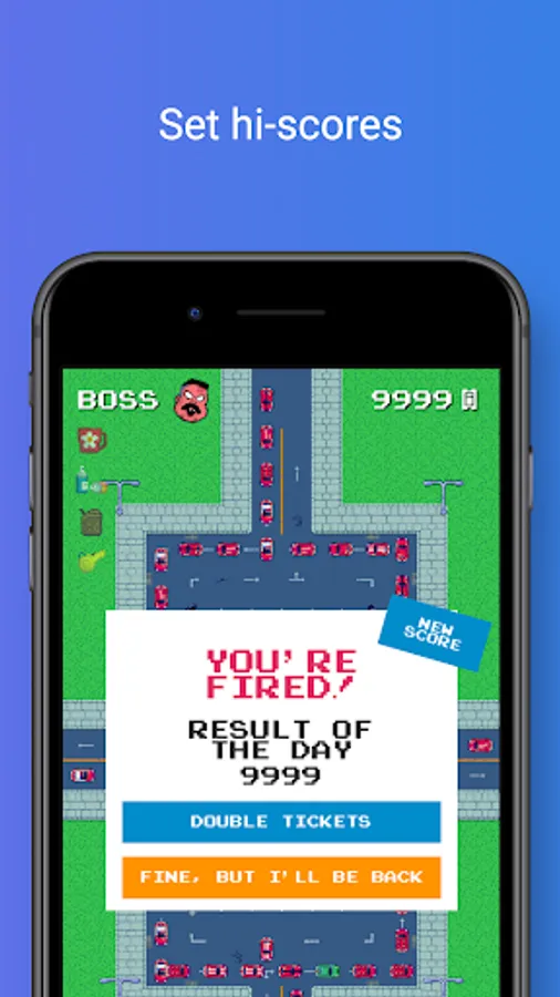 Today is your first day at work. You're a parking attendant! Show the way to the parking spaces and then to the exit, and get parking tickets. The more parking tickets, the better! If you drag it out, the cars and their owners will turn red or green with anger. Angry drivers will beep and honk, and this drives your boss mad. If you tick him off, he'll fire you.