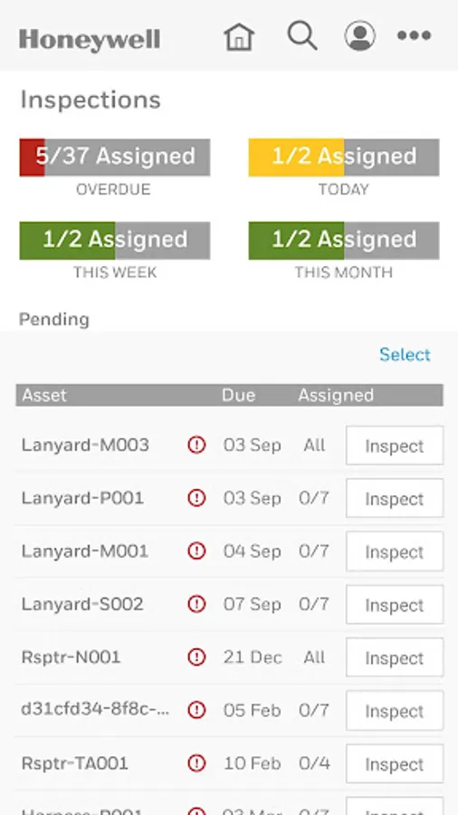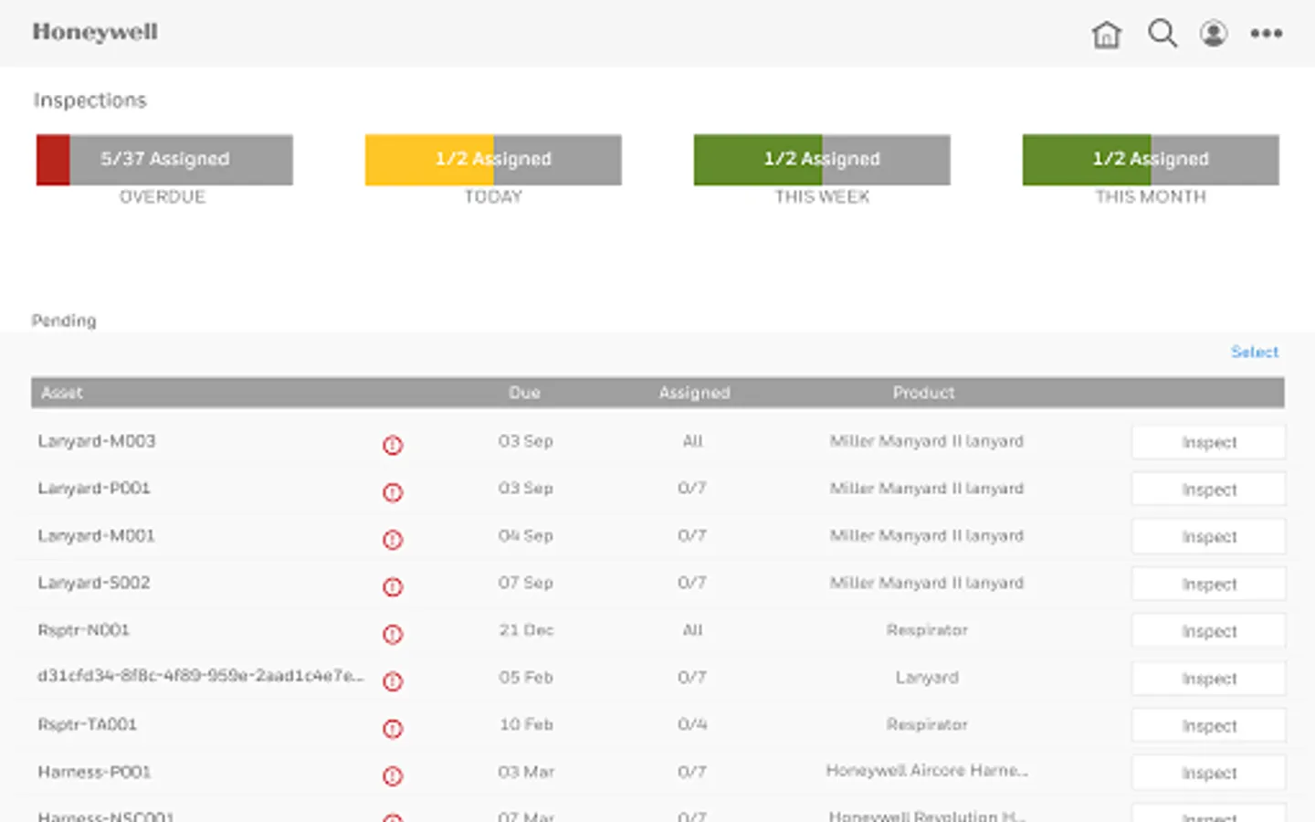 Inspection manager is safety suite offering from Honeywell to support inspection of Personal Protective Equipment (PPE). Inspections are performed on products to keep them compliant. The inspectors can perform individual or bulk inspection of PPEs. Inspector will also be able to inspect PPEs via serial IO (RFID bluetooth reader). Inspections can be performed on the assets that are due for inspections. Inspections can be performed in offline mode as well.