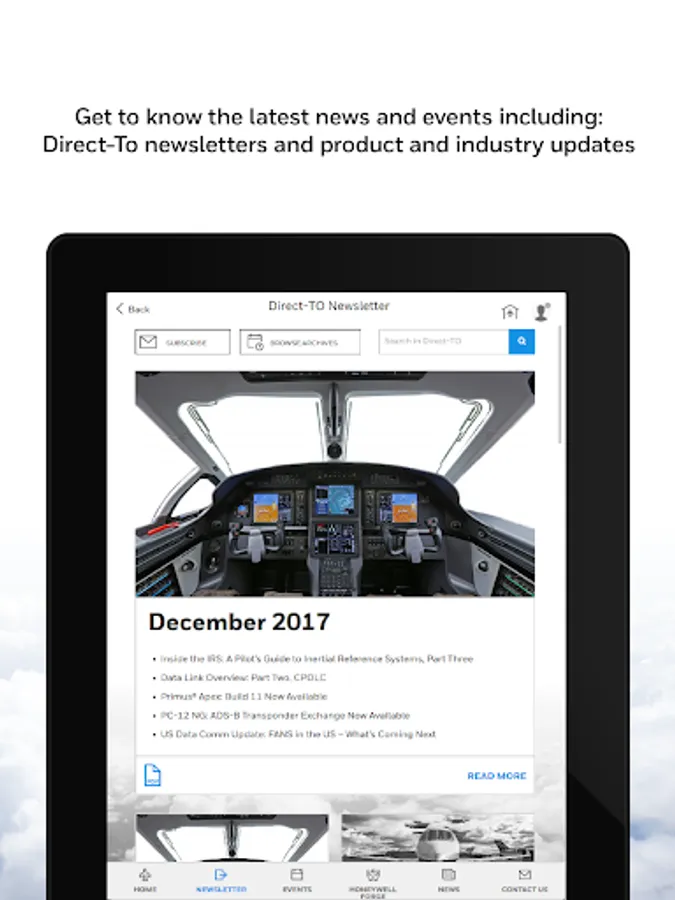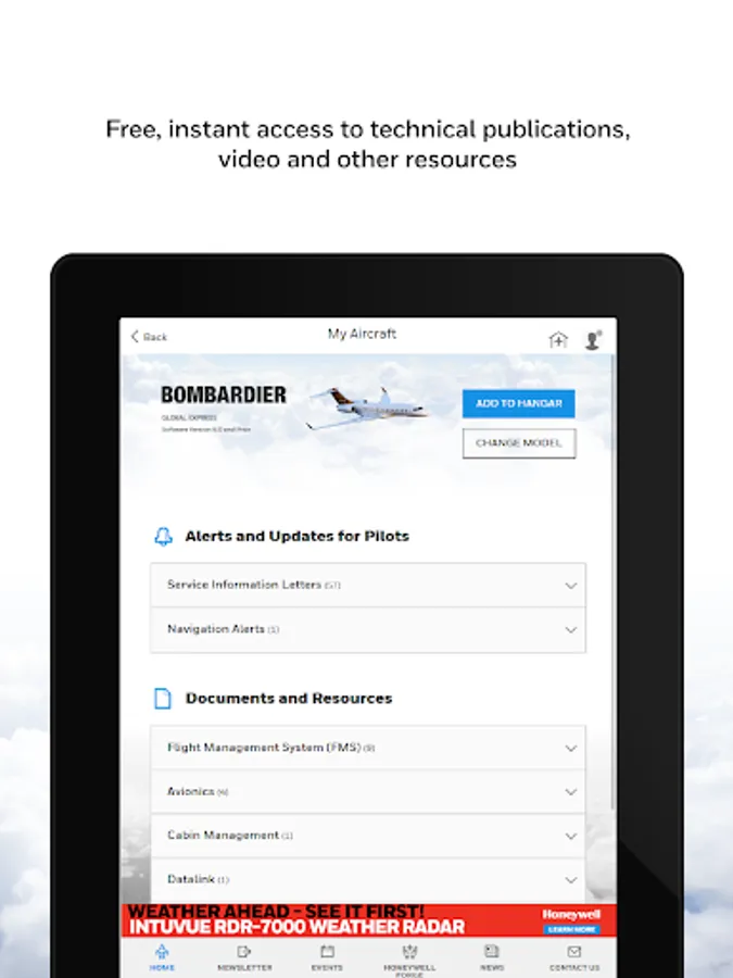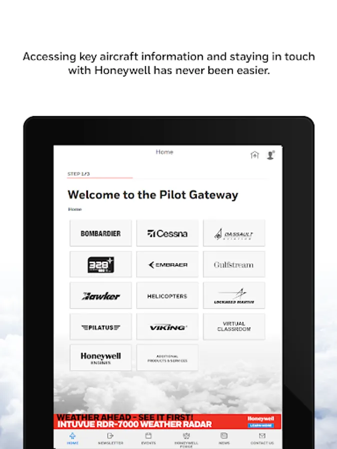 The Honeywell Pilot Gateway mobile app gives corporate aircraft pilots instant access to information about their Honeywell products and services. It’s a one-stop solution that organizes technical publications, videos and other valuable resources by aircraft make, model and system. The gateway also makes it easier than ever for pilots to stay in touch with Honeywell Aerospace by providing a simple tool for submitting questions, feedback and technical issues.