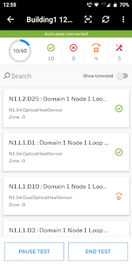 • Walk test functionality records testing of both connected and non-connected devices
