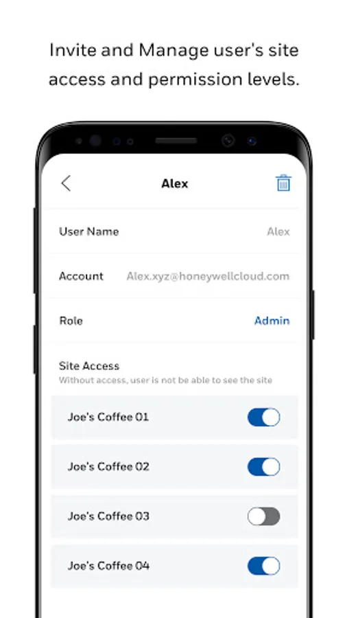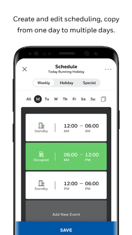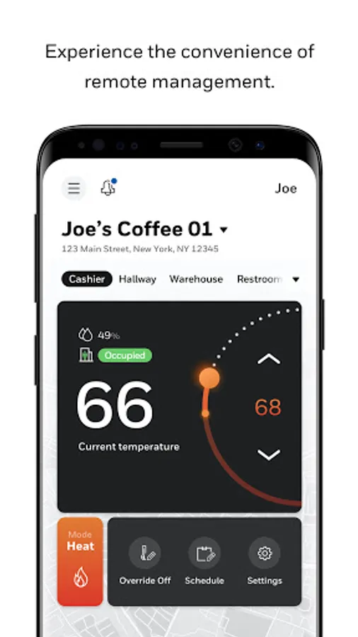 The Honeywell Connect Me app gives authorized users access to the Honeywell TC500 Thermostats in their commercial buildings. Remotely monitor sites, schedules, settings, and override controls. Add and configure devices, manage users and more – all from a mobile device.