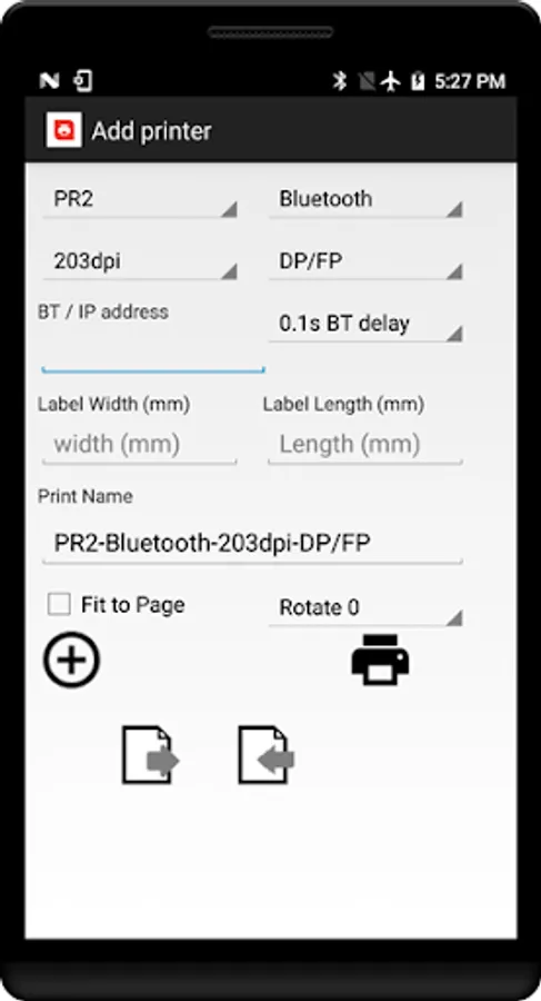 Support print rotation and fit to Page. Note: when width or length is set to value below 5mm. It prints using the original document size. That is, fit to page will not work.