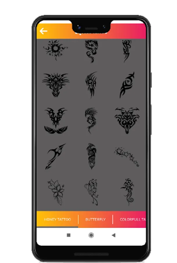 -> Select different type of tattoo design like Designing, flower, dragon, Skull, Heart, Butterfly, and piercing from the tattoo screen