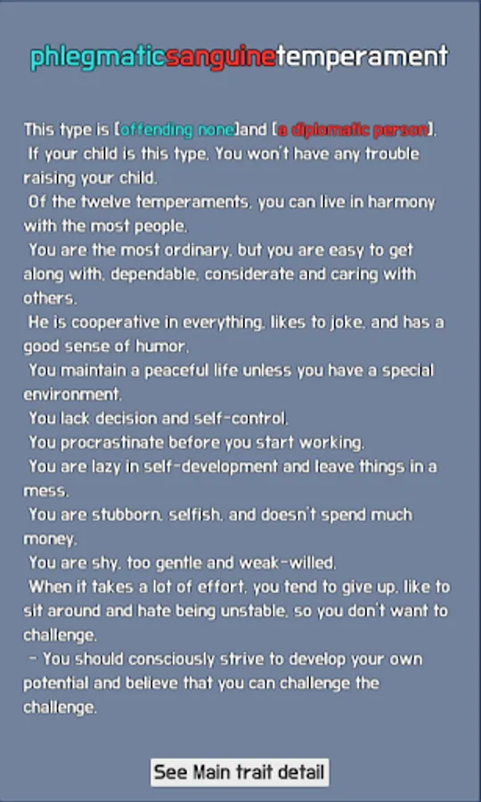 Is it really in the nature of the test that he made you the owner of certain personality type?