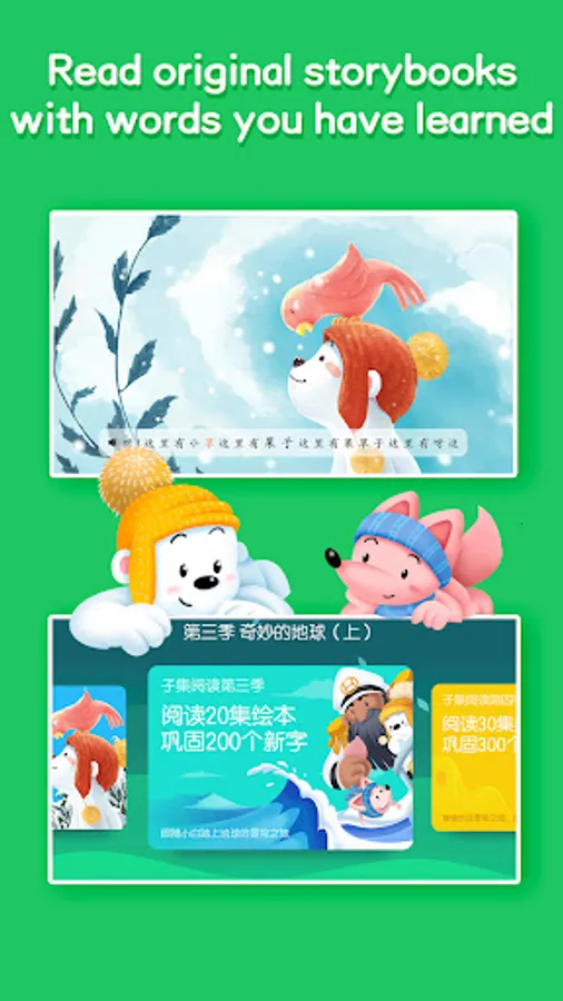 iHuman Chinese has 130 simple books that use only the words learned on the app. Join the adventures of Little Polar Bear while practicing your reading skills!